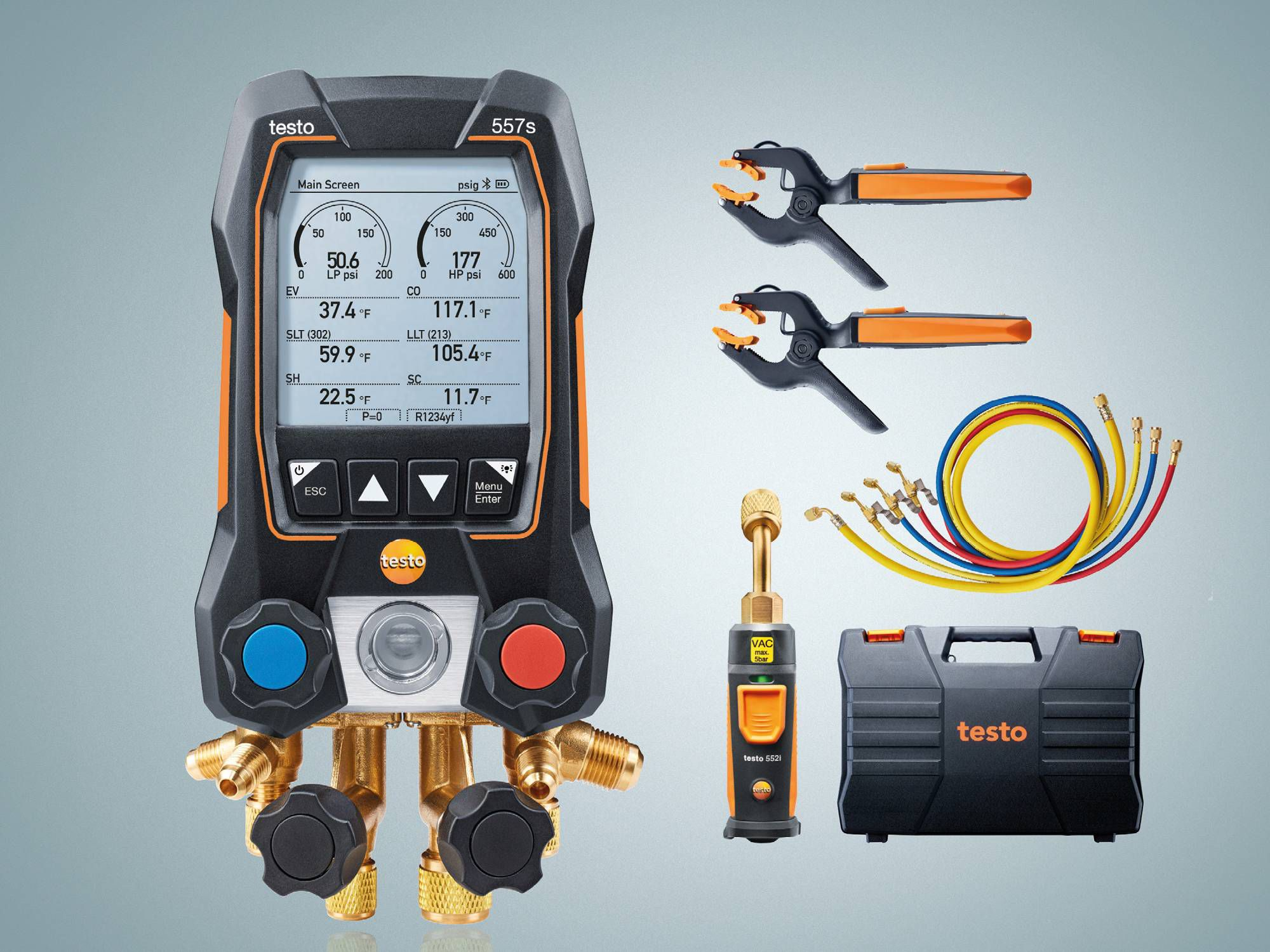 - Mesure Polyvalente : L’appareil Testo 557s est conçu pour mesurer divers paramètres des liquides réfrigérants, y compris la pression, la température, et la surchauffe ou la sous-refroidissement, offrant ainsi une solution complète pour les professionnels de la climatisation et de la réfrigération.